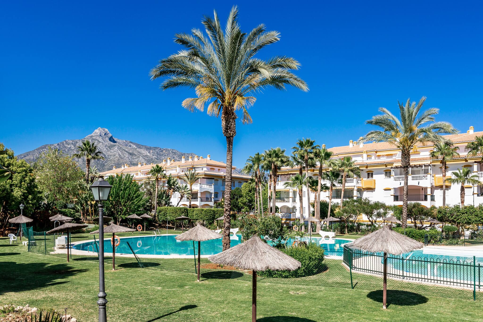 Comunidad cerrada con 2 piscinas, pistas de pádel y restaurante/café. Seguridad 24 horas