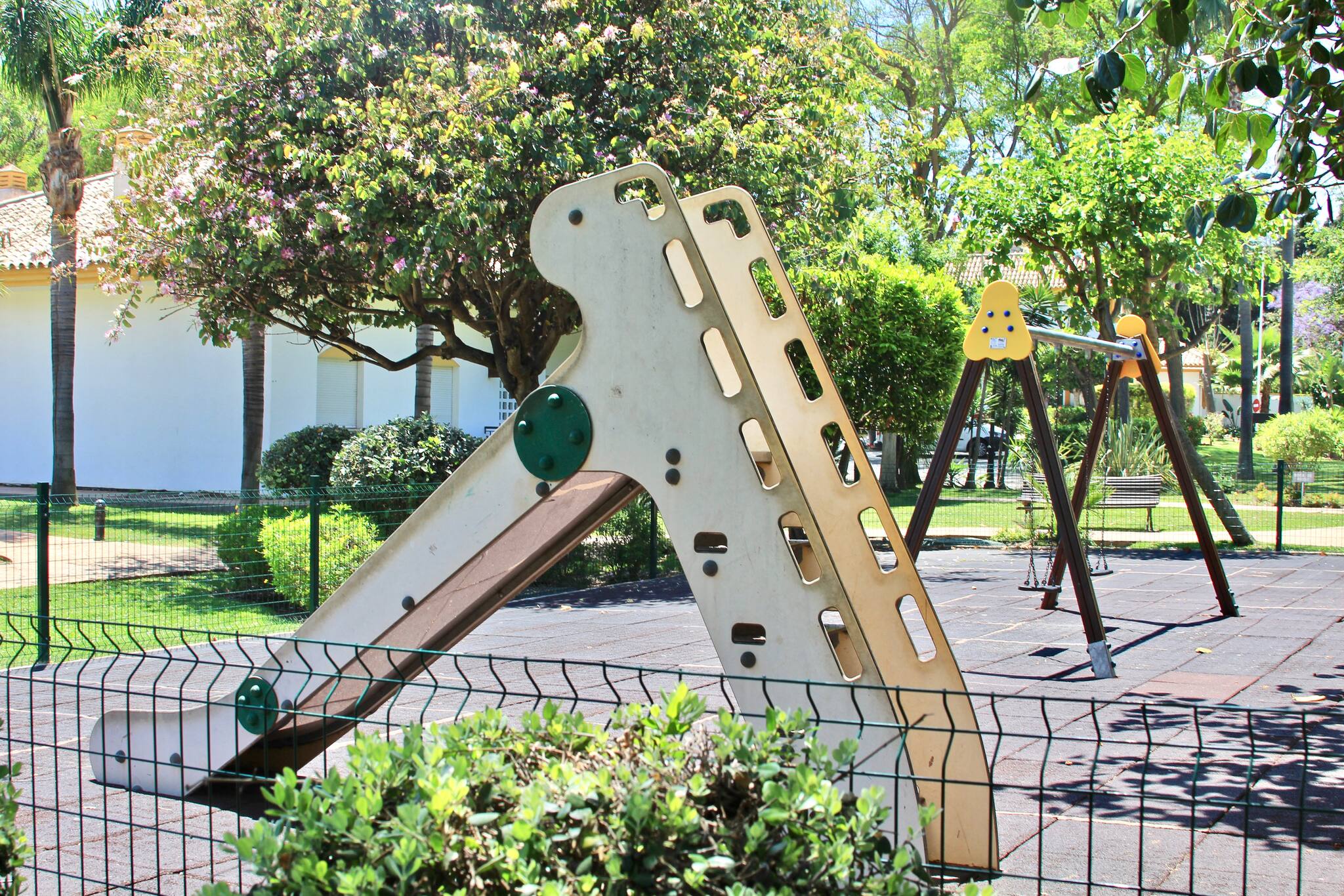 Aparcamiento, piscinas, chiringuito, pistas de pádel, jardines, zona infantil.