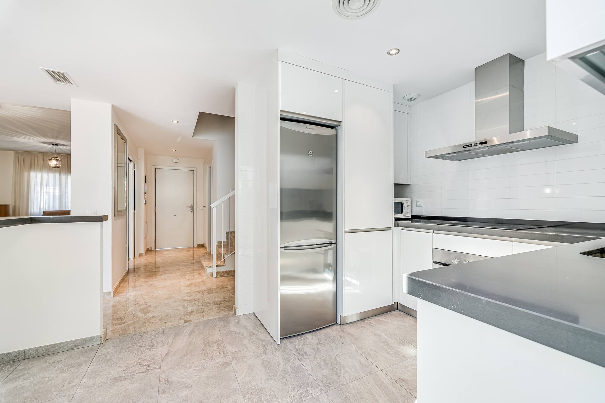 Disfruta de una cocina americana completamente equipada con electrodomésticos de última generación: horno, microondas, lavavajillas, cafetera, tostadora y todos los utensilios necesarios para preparar deliciosas comidas. El aire acondicionado y la bomba de calor te mantendrán a la temperatura perfecta en cualquier época del año.