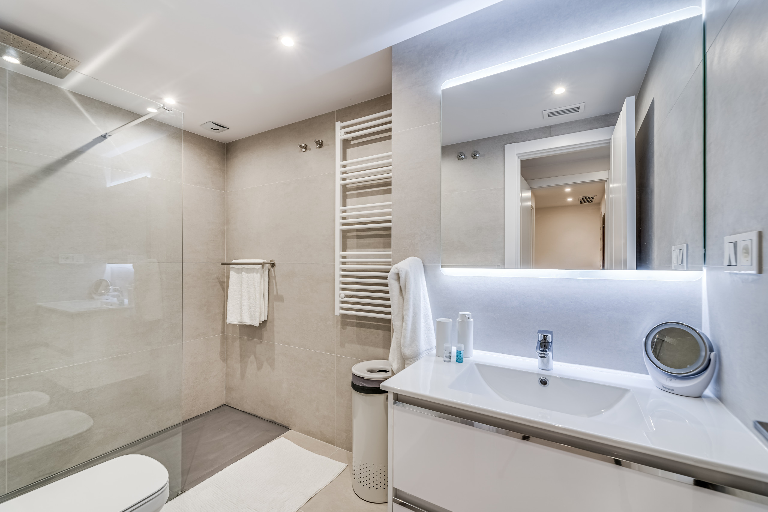 Feel the warmth under your feet after a refreshing shower thanks to the underfloor heating in the bathroom, also equipped with high-level fittings and the softest Egyptian cotton towels. Finally, end the evening with a soothing Sangria on the terrace, with a beautiful view of the Spanish sun setting behind the mountain range.