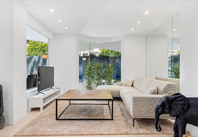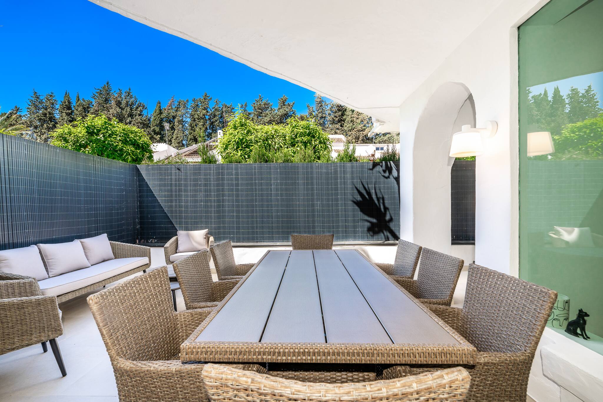 Appartement à Nueva andalucia qui possède 3 chambre(s) et Capacité pour 6 personnes. Logement de 130 m² confortable et totalement équipé, avec vue sur le jardin. La location se trouve à 300 m du supermarché, 400 m du domaine de Golf, 2 km de la ville, 2 km de la plage de sable, 60 km de l'aéroport et il est situé dans une zone idéale pour familles zone et dans la zone urbaine.Elle dispose de terrasse, lave-linge, fer à repasser, coffre-fort, accès internet (wifi), sèche-cheveux, chauffage pompe à chaleur, climatisation, piscine collective, parking extérieur bâtiment proche, 1 Télévision.La cuisine indépendante, à gaz, est équipée avec réfrigérateur, micro-ondes, four, congélateur, lave-vaisselle, vaisselle/couverts, ustensiles/cuisine, cafetière, grille pain, bouilloire et cuisinière.