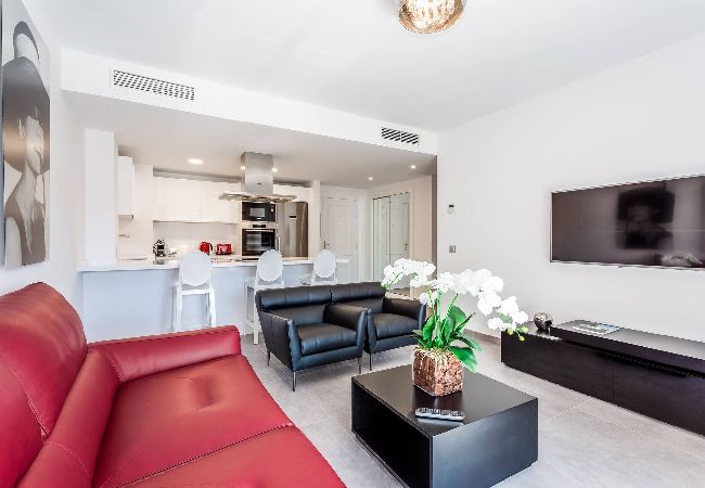 Appartement à Puerto Banus qui possède 2 chambre(s) et Capacité pour 4 personnes. Logement de 100 m² confortable et totalement équipé, avec vue sur la piscine. La location se trouve à 0 m de la ville, 50 m du supermarché, 100 m de la plage de sable, 2 km du domaine de Golf, 60 km de l'aéroport et il est situé dans une zone animée zone et proche du commerce et des restaurants.Elle dispose de ascenseur, terrasse, lave-linge, sèche-linge, fer à repasser, coffre-fort, accès internet (wifi), sèche-cheveux, chauffage pompe à chaleur, climatisation, piscine collective, parking couvert même bâtiment, 1 Télévision.La cuisine américaine, à induction, est équipée avec réfrigérateur, micro-ondes, four, congélateur, lave-vaisselle, vaisselle/couverts, ustensiles/cuisine, cafetière, grille pain, bouilloire et cuisinière.